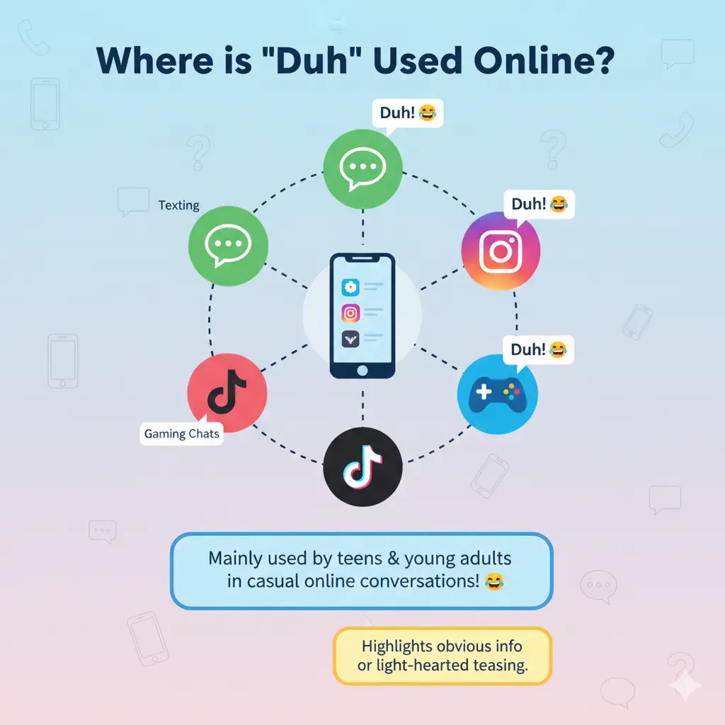 “Duh” is popular across multiple platforms and is especially common in casual digital conversations: