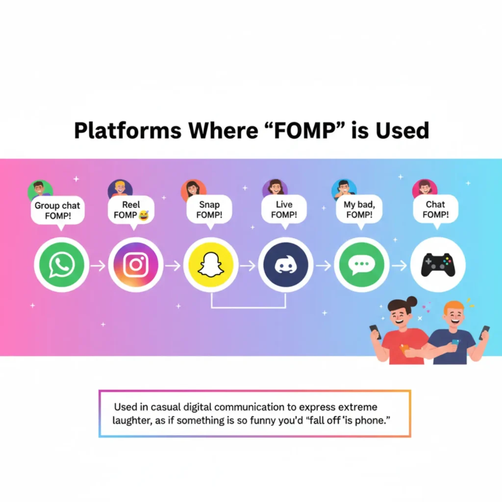 Youâll mostly see FOMP in casual, fast-paced online spaces, especially where humor and reactions matter.