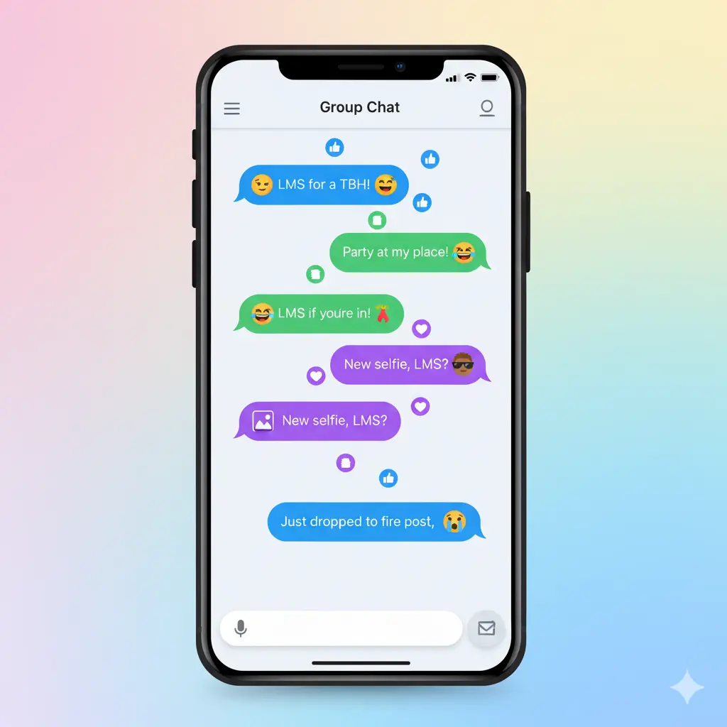 - Group chats or friend DMs: Someone might text “LMS if you wanna go out later” meaning “Like my status/post if you’re in.”