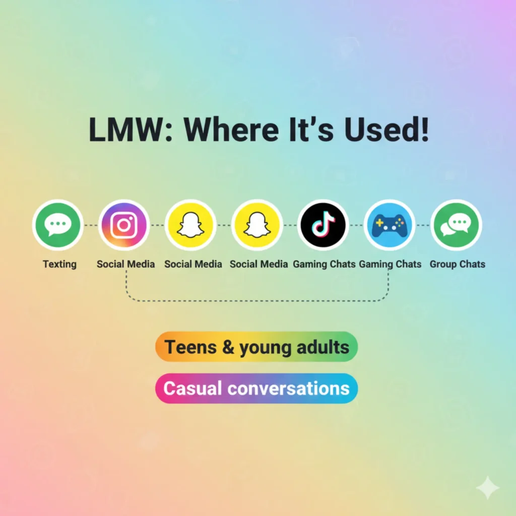 In terms of audience, LMW is mostly used by teens, young adults, and social media-savvy users, though anyone familiar with texting acronyms could drop it into a conversation.