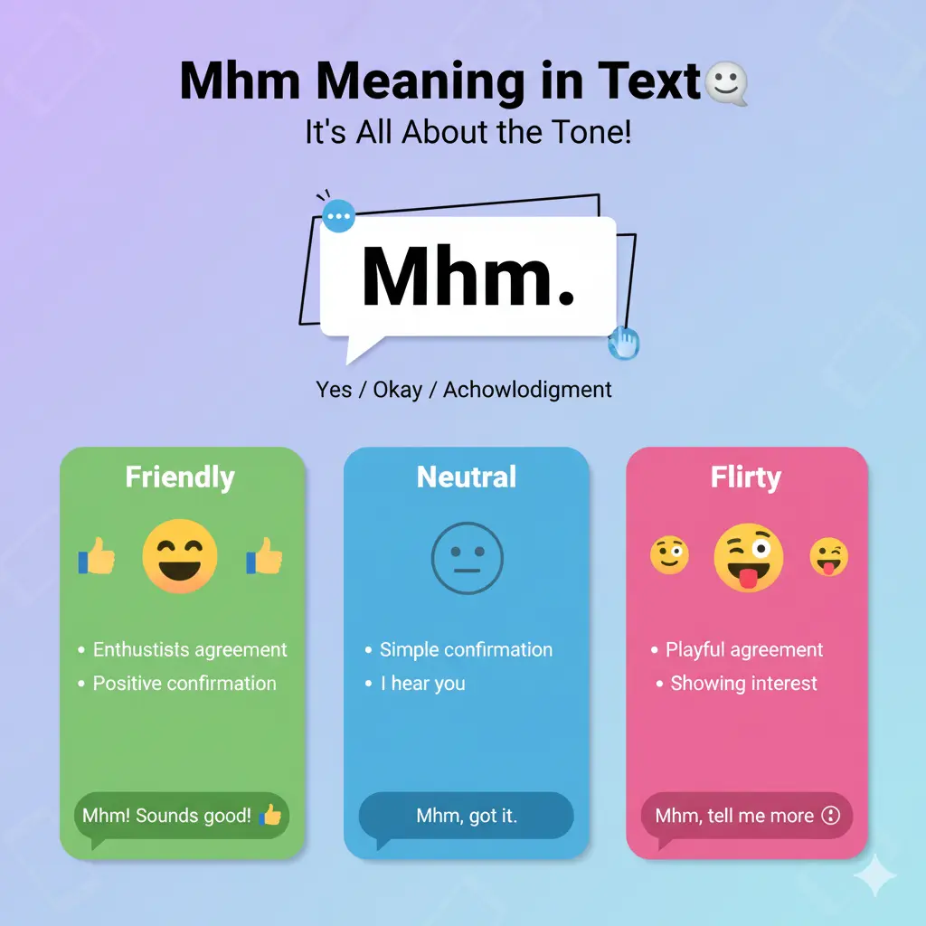 Tip: Pairing “mhm” with an emoji can help clarify tone—like 😊 for friendliness or 😏 for flirty messages.