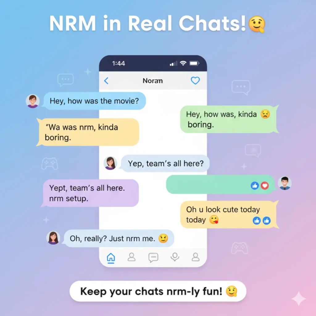 From a girl, NRM usually just means “normal.” It’s neutral—not rude, not flirty by default. Context and emojis matter more than the word itself.