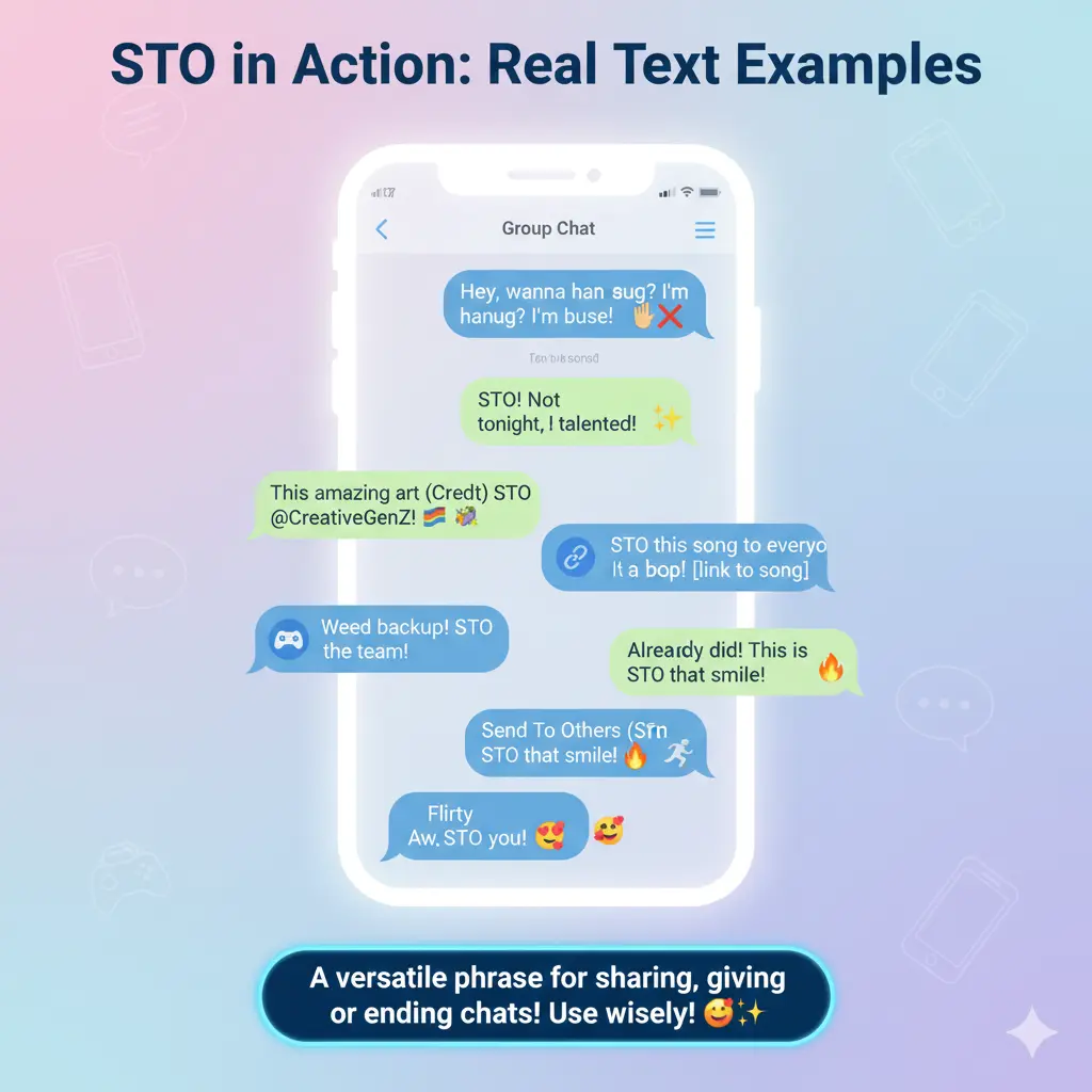 Use STO freely in your friendly, funny, and flirty chats, but avoid it in formal or serious conversations. Once you understand the tone behind it, STO becomes an easy and fun way to react quickly online.
