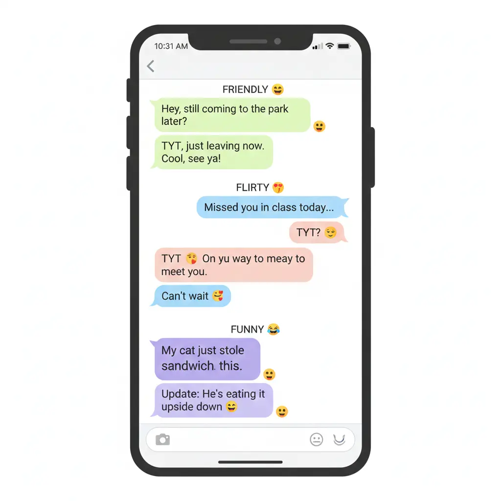 On its own, TYT isn’t flirty. However, in a personal chat—especially with emojis—it can feel warm or attentive, which might come across as mildly flirty.